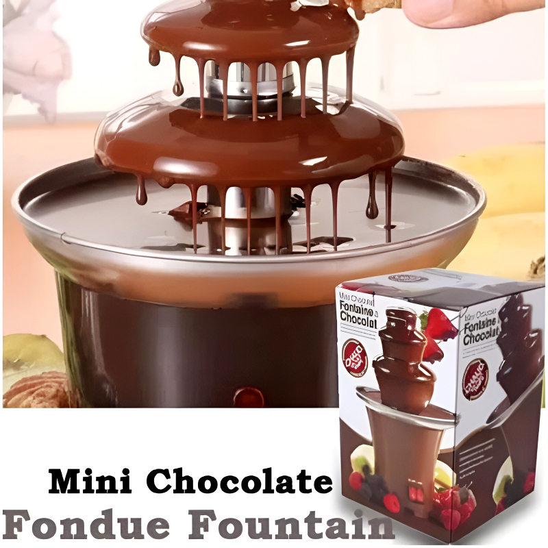The fountain’s three-tiered design creates a beautiful cascading effect, with a spiral mechanism that keeps the chocolate flowing continuously. The heated bowl and tower ensure that your chocolate stays perfectly melted, allowing for even dipping of your favorite treats.